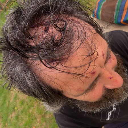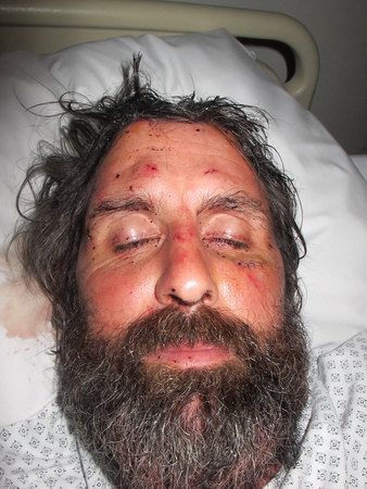Warren Mars at the hospital after being stitched up and 2 days later showing some of the head wounds.